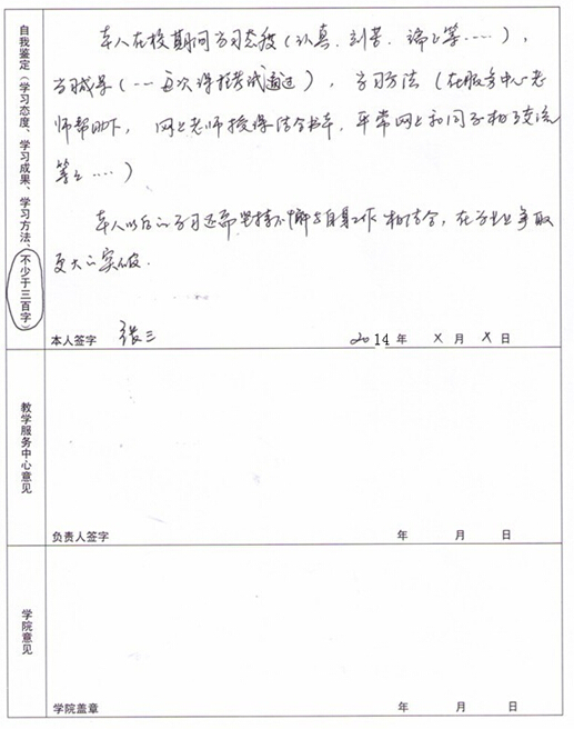 3、在《畢業生登記表》中需填寫“自我鑒定”(包括學習態度、學習成果、學習方法,不少于300字)及從初中開始的個人簡歷,請事先準備好。