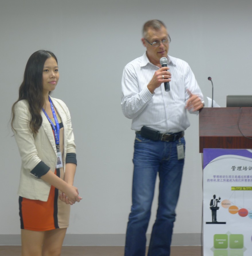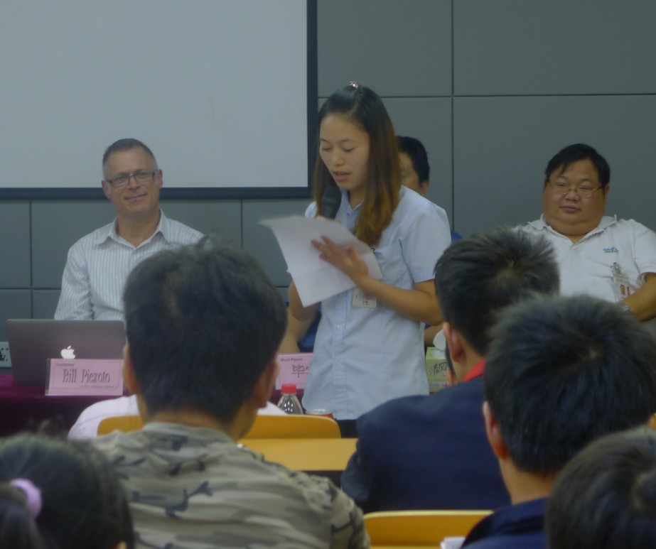 客戶代表Bill先生也發表了熱情洋溢的致辭,他感謝中國人民大學、捷普綠點廠方及捷普綠點201309屆新生的出席,并對于我校開展員工在職進修學歷培訓的創新模式給予了高度的評價。Bill先生預祝大家學業有成并與201309屆新生相約兩年半后的畢業典禮。