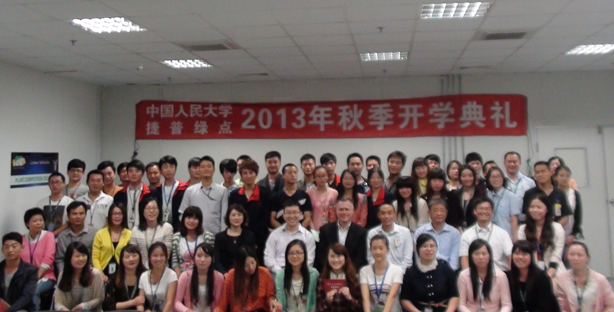 10月14日,中國人民大學網絡教育捷普綠點2013年秋季新生開學典禮分別在捷普綠點塑膠廠、綠鎂廠隆重舉行。典禮由中國人民大學繼續教育學院高海燕老師主持,中國人民大學繼續教育學院副院長顧宗連,中國人民大學繼續教育學院項目部主任吳杰老師、客戶代表Bill、客戶代表曹楊、捷普人才發展學院廖韋翔、捷普人才發展學院羅玲、捷普綠點塑膠廠及捷普綠點綠鎂廠的領導們應邀出席。網上人大部分老師,捷普綠點塑膠廠、綠鎂廠201309屆人大人大新生也參加了本次典禮。