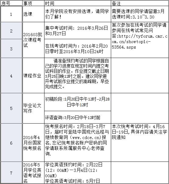 下表是2月教學(xué)工作安排,請(qǐng)同學(xué)們參照此表安排自己辦事時(shí)間 , 并相互轉(zhuǎn)告: