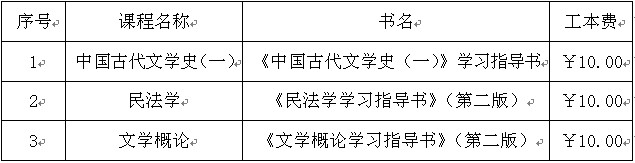 本學期三門課程有學習指導書:《中國古代文學史(一)》、《民法學》、《文學概論》。