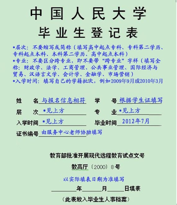 三、《畢業生登記表》不能涂改,請同學們務必認真仔細,也不能使用涂改液,如填寫錯誤可用刀片將寫錯的地方輕輕刮掉,該表后期會存入個人檔案;