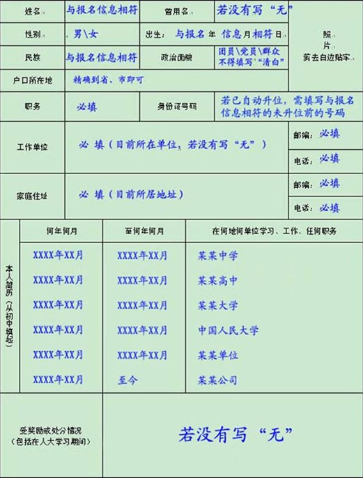 四、政治面貌一欄只能填寫黨員、團員或群眾,不能填寫“清白”二字;