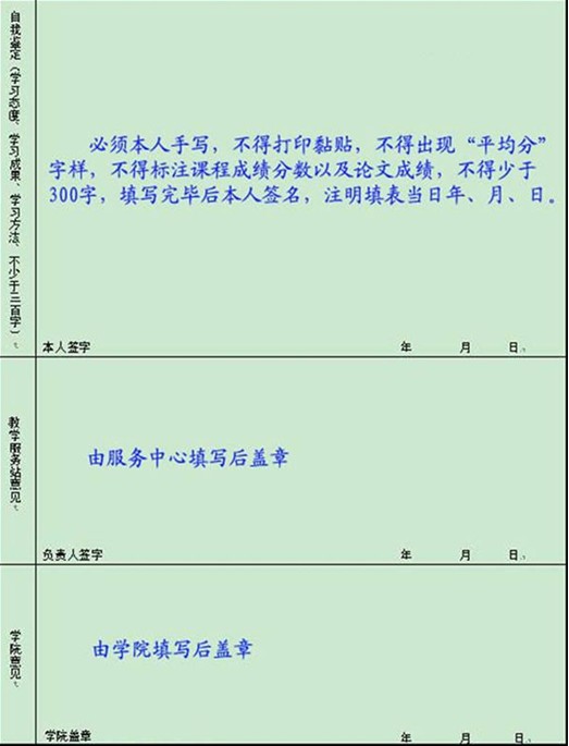二、請提前撰寫好字數不少于300字的的“個人鑒定”根據在網院學習期間的態度、成果、方法等方面來總結。個人鑒定必須手寫,不能粘貼打印稿;