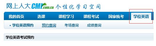 返回“個性化學習空間”上方“學位英語”欄目,然后點擊“預約查詢”,進入網上預約查詢頁面,可以查看預約結果。