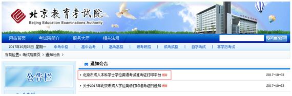 【準(zhǔn)考證打印】2017年下半年北京地區(qū)成人本科學(xué)士學(xué)位英語(yǔ)統(tǒng)一考試