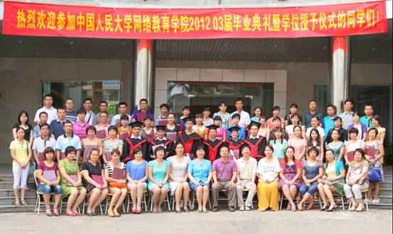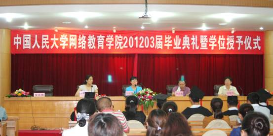 2012年5月19日上午,中國人民大學網絡教育??诮虒W服務中心在海南郵電培訓中心隆重舉行“201203屆畢業生畢業典禮及學位授予儀式”。人大網絡教育學院副院長岳俊芳、海南郵電培訓中心主任林新巍、海南郵電培訓中心副主任陳瑞華等參加了典禮。