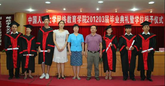 此次網上人大畢業的有金融學、法學、市場營銷、會計學、人力資源管理、公共事業管理、漢語言文學等專業的高起專、專升本畢業生近100名,他們多來自政府部門、企事業單位等。其中,王世策、陸燕艷、陸喜勇、吳坤偉、顏桂瓊、林慧6位同學獲得學士學位,王世策、陸燕艷被評為“優秀畢業生”。