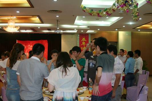 宴會一開始,便由服務中心黃老師帶頭獻歌一曲黃梅戲。緊接著,王聰,完顏,孫潔,孫勇,嚴瑩等學員均施展了才藝表演。一時間,大家把酒言歡,籌交錯,歡聲笑語。參與者紛紛獲得了兩位李老師精心準備的禮品。