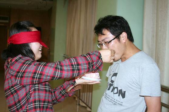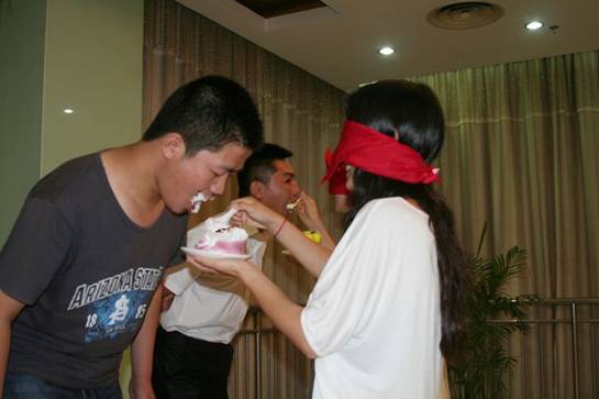宴會進行中,小李老師即興組織了一項游戲“喂蛋糕”。學員們積極參與,掀起餐酒宴會的再一次高潮。
