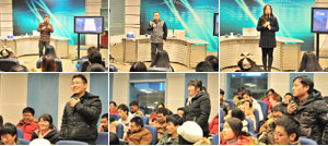 師生們在人大校園的多媒體教室,舉行了氣氛熱烈的交流座談會。會議由校園文化部丁老師主持,學院領導岳俊芳副院長、教學點老師、學生代表先后發(fā)言。還舉辦了關注學院微信,送紀念章活動。